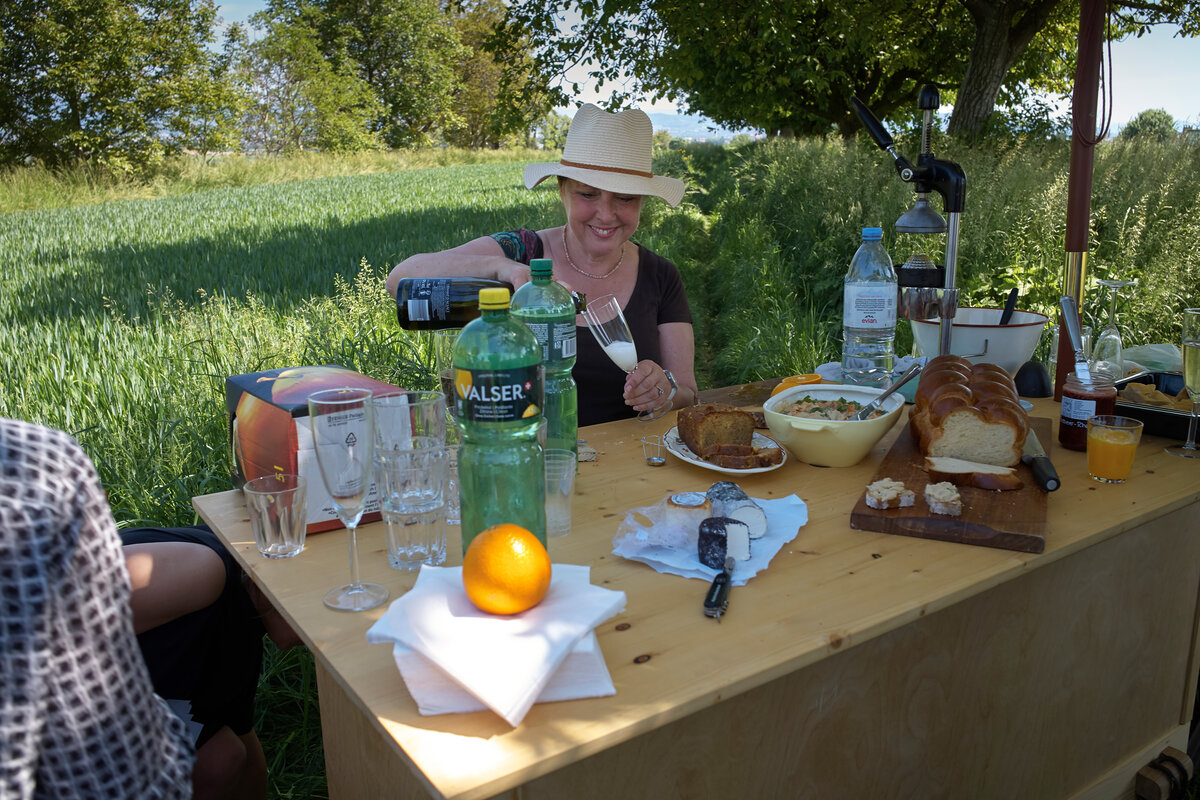 Les lectures itinérantes de Martin Burr, Mimi von Moos et Victor Saudan à travers le Rosenberg étaient également accompagnées par les deux musiciens. Des buffets de vernissage ont été organisés en trois lieux : dans la cour de la synagogue à Hégenheim, sous un cerisier sur le Rosenberg, et dans la cour du Blauen Letten à Allschwil, lieu lié au Windzimmer de la Kunsthalle.