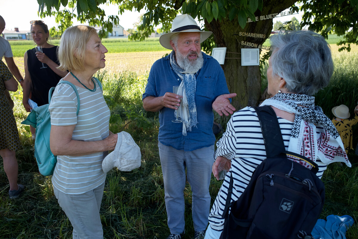 Nous avons effectué une dernière traversée de Hégenheim à Allschwil, relu les textes, échangé en marchant, et conclu l’événement par un apéritif au Blauen Letten. Ce jour-là, environ 150 personnes ont participé.