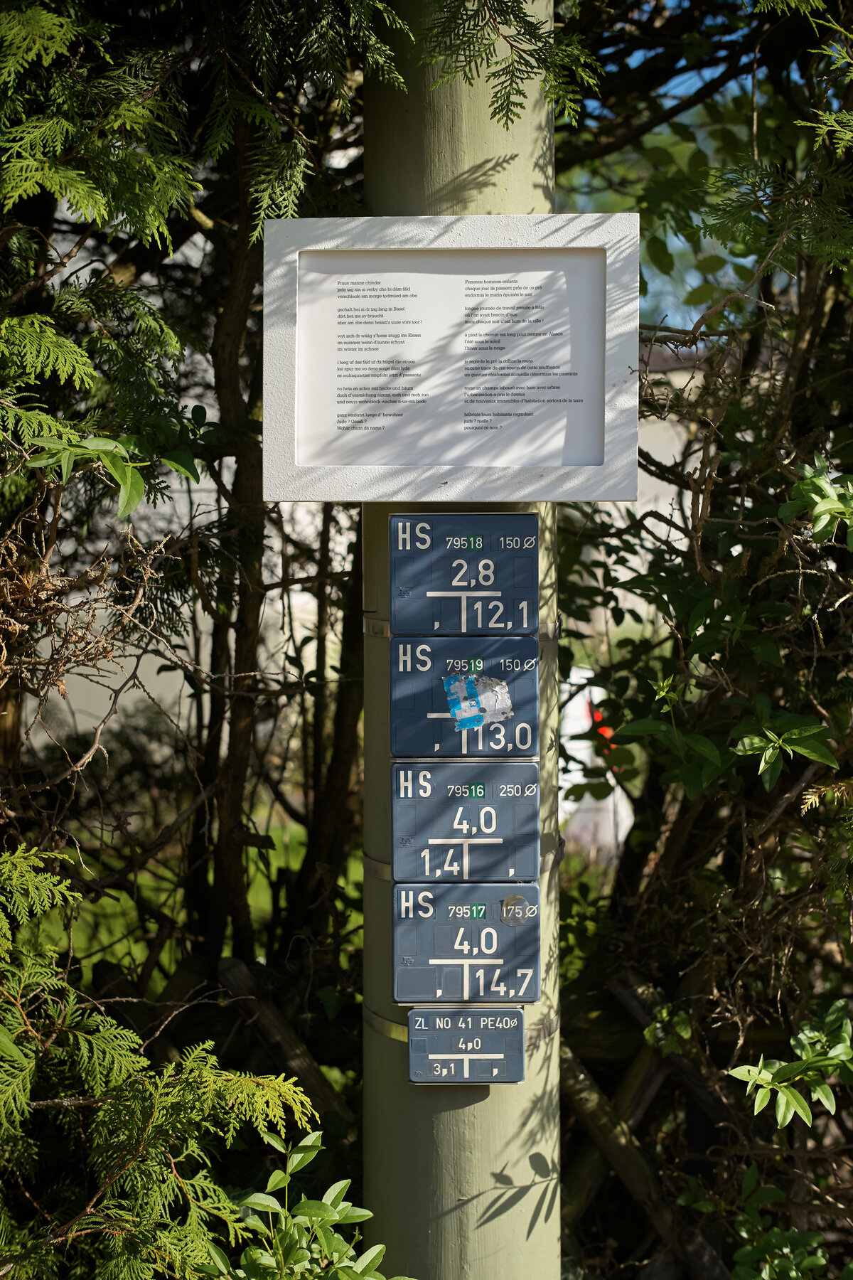 Le 15 mai, le projet « Verschreibung der Landschaft » (Prescription du paysage) a été inauguré — un concept de Mimi von Moos. Il s’agissait d’interventions poétiques dans le paysage, le long du chemin reliant les deux lieux culturels : le ventre / Synagogue de Hegenheim (F) et le Windzimmer de la Kunsthalle Allschwil (CH). Mimi von Moos, Martin Burr et Victor Saudan se sont installés dans la nature pour écrire sur la présence au lieu, et ont laissé leurs textes in situ pendant deux mois, à lire par les promeneurs.